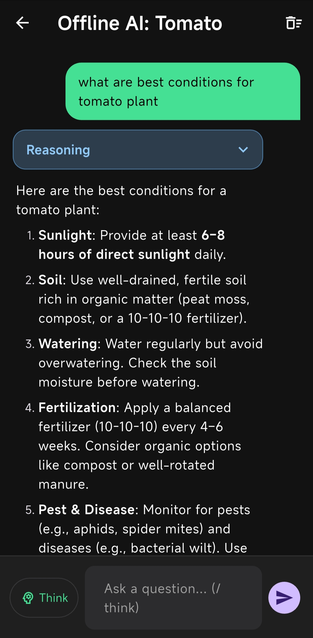Log images, notes, and crop status with ease. Your diary becomes a smart mentor, allowing you to chat with its AI to get insights from your past data.